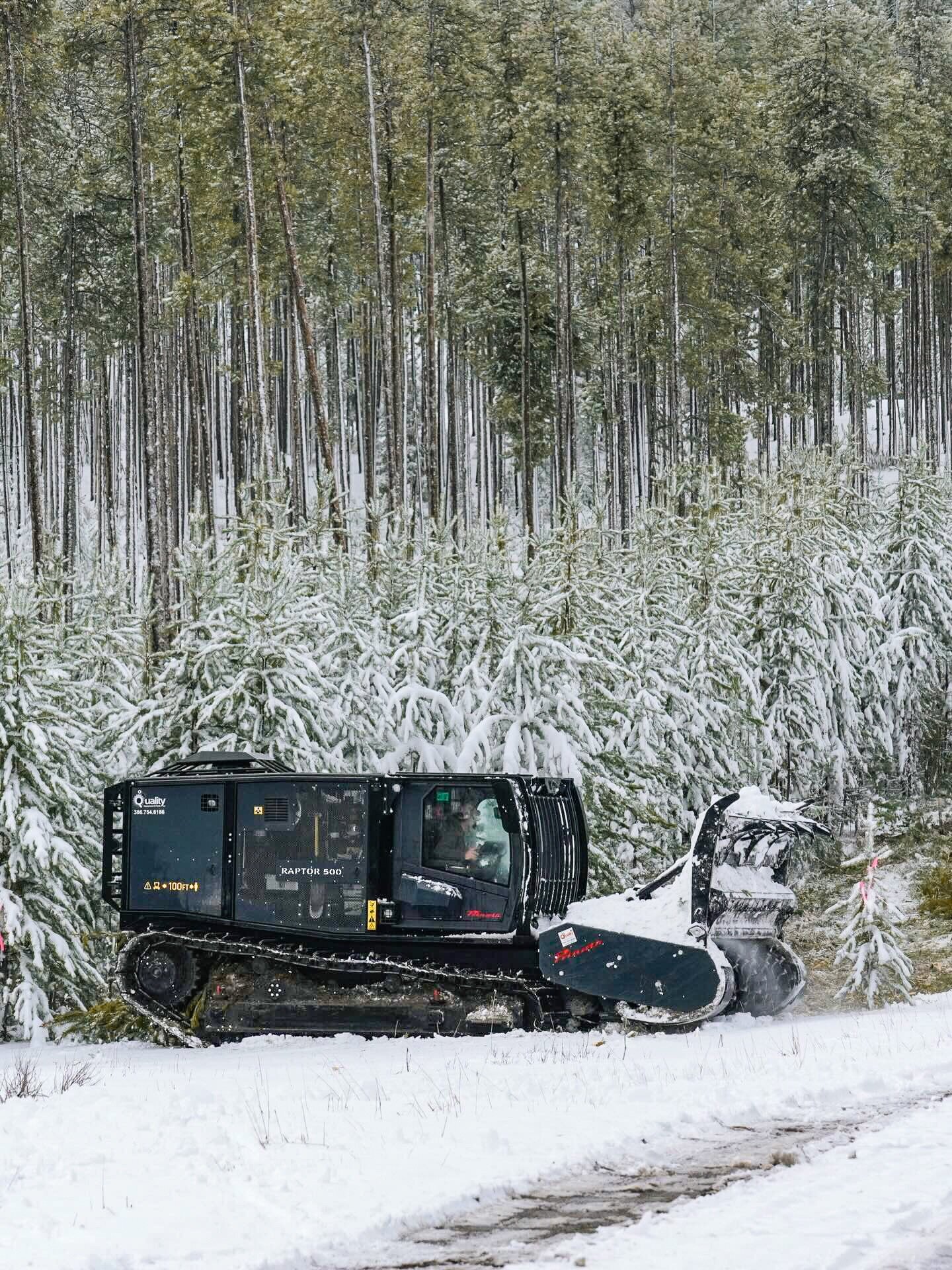 Pushing the forest back, winter edition ❄️ No matter the weather, the #Raptor500 reopens infrastructure roads, cuts down fire fuels, and brings safe access back for emergency crews 🚨 Credits: bigskylandmgmt 🎥 #Prinoth #prinothvegetationmanagement #vegetationmanagement #forestry #montana #unitedstates #mulcher #landclearing #rightofway