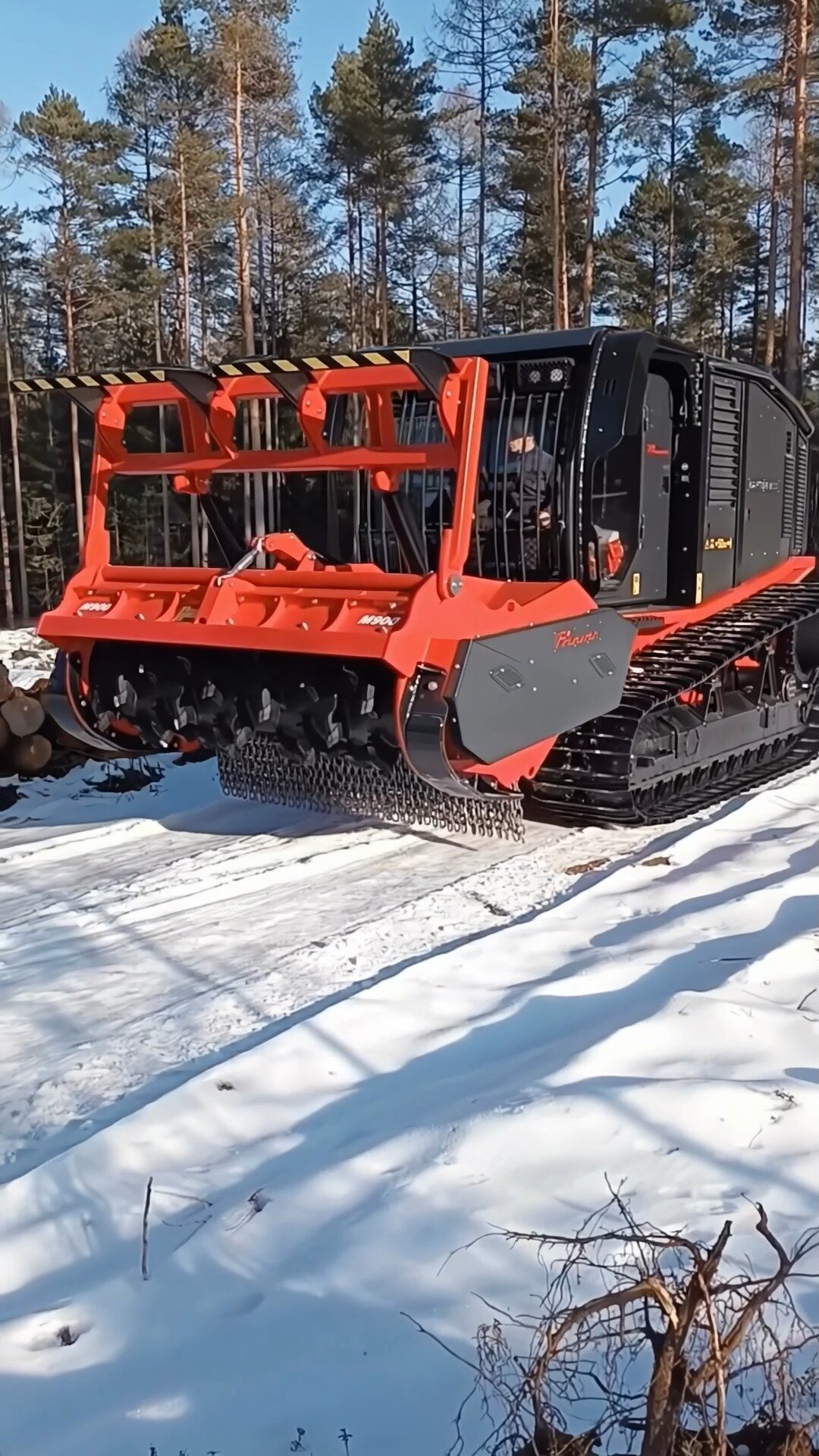 Winter looks good on the 𝗥𝗮𝗽𝘁𝗼𝗿 𝟴𝟬𝟬 ❄️ Snow, rough ground, frozen soil, hidden stumps—good thing it brings 640 hp, all-terrain Delta Tracks, and a mulcher that keeps pushing through it all 💥 Client: Kettwiger-Baumdienst Skibba GmbH 🤝 Credits: Forsttechnik Sauerland GmbH 🎥 #Prinoth #Raptor800 #prinothvegetationmanagement
