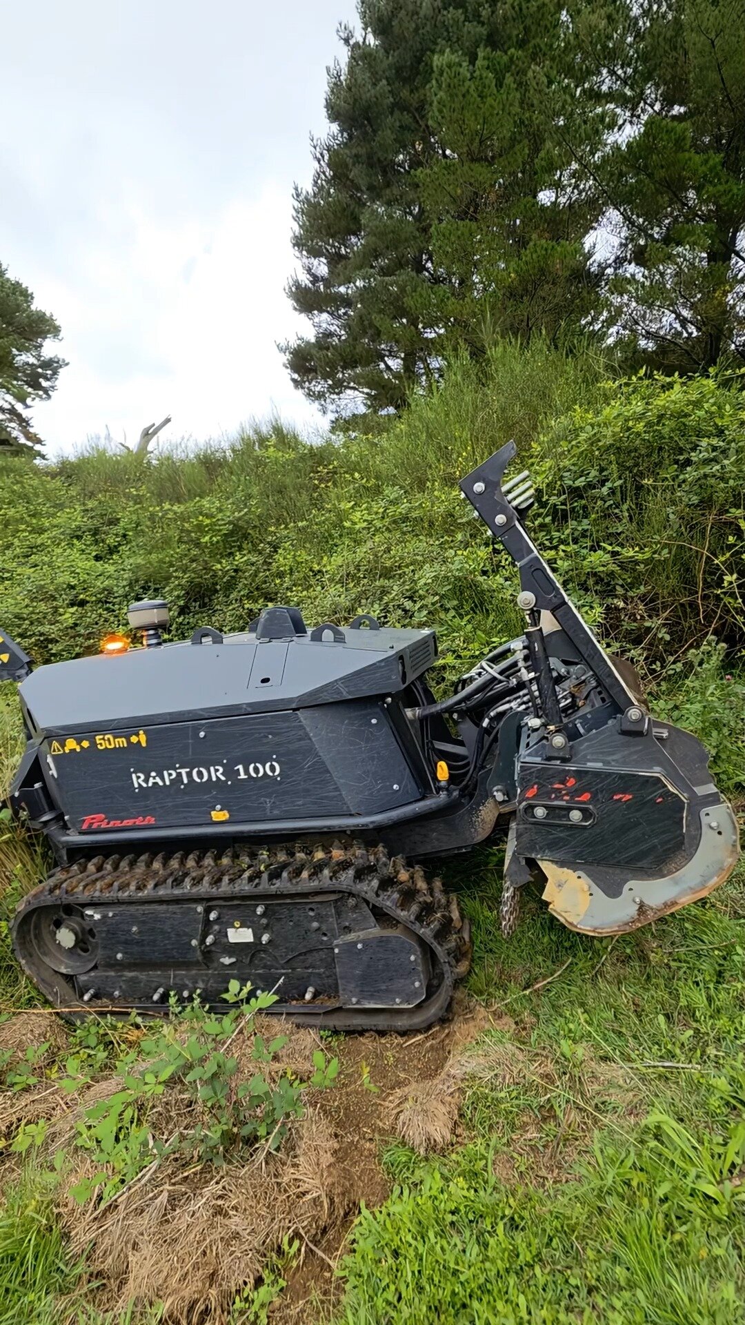 Branches, bushes and unwanted growth, all getting the #Raptor100 treatment 💪 You stay back while it handles the steep, rough, and messy work 💥 Credits: mrskovservice 🎥 #Prinoth #prinothvegetationmanagement #remotecontrolled #mulcher