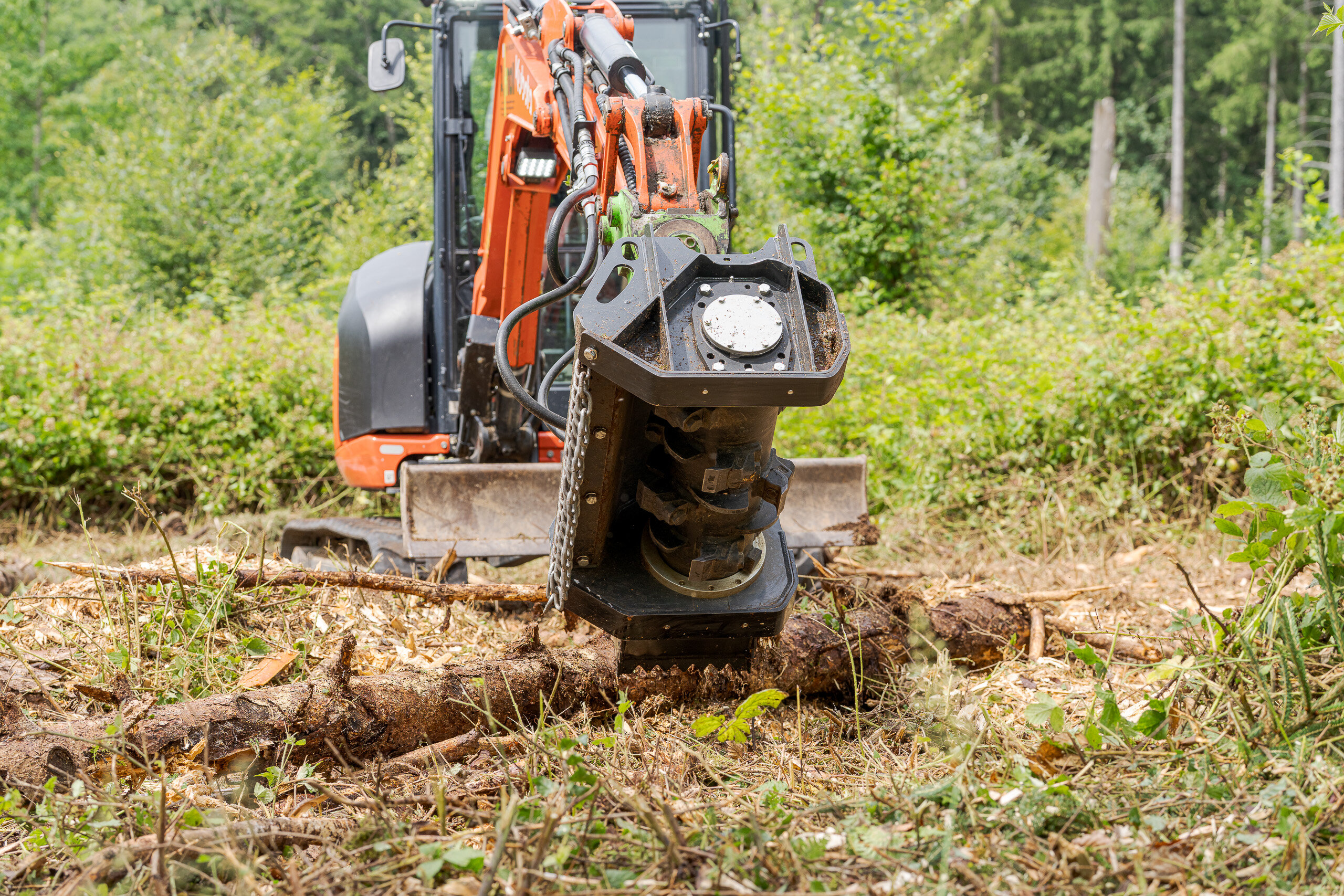 Neuer Grizzly M300e: Leistungsstarker Forstmulcher für Minibagger von 1,5–4 Tonnen.