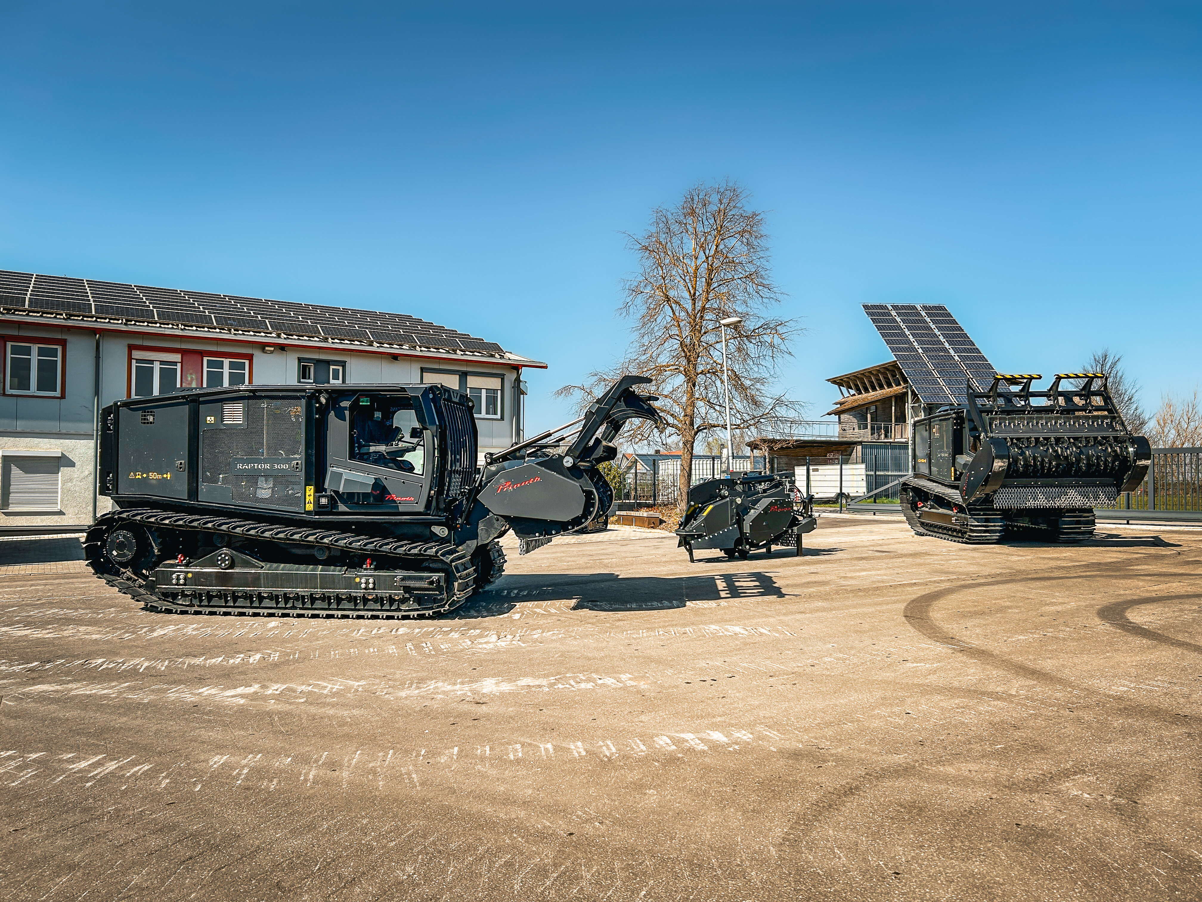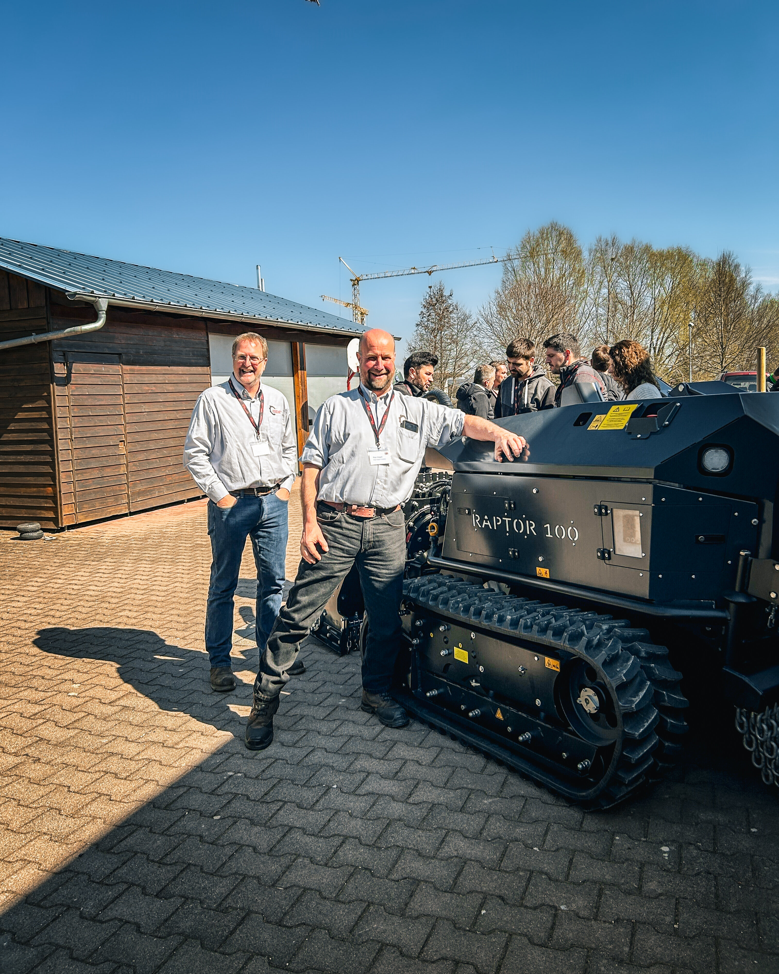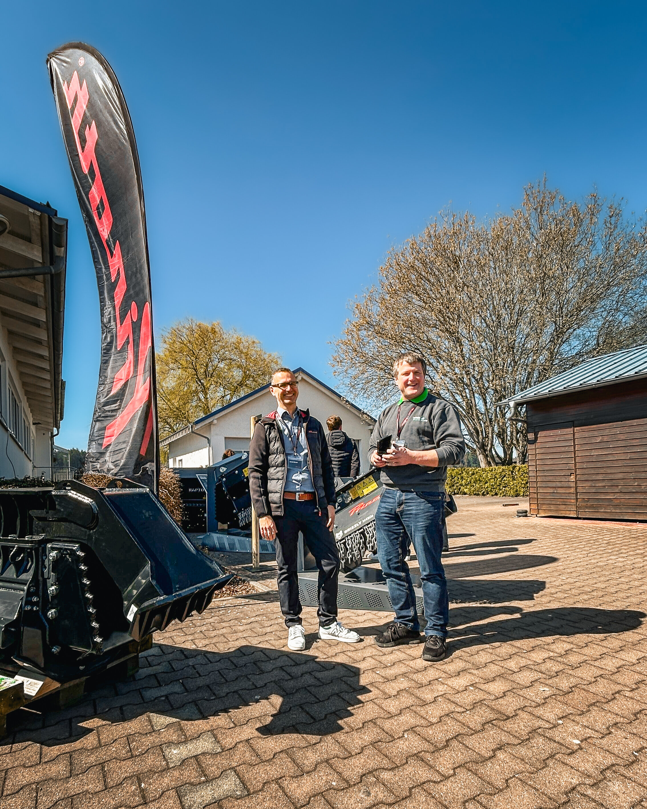 - Tag 2: Maschinen live erleben. Am zweiten Tag standen Kunden und Maschinen im Fokus. Nach einer Werksführung wurden auf der Demofläche leistungsstarke Raupenfahrzeuge, wie der Raptor 100, Raptor 200, der Baggermulcher Grizzly M350e und der Forstmulcher Grizzly M650m turbo live demonstriert. Ein Foodtruck und beeindruckende Ausstellungsmaschinen schufen Begeisterung und eine lebendige Atmosphäre, die zum entspannten Networking in lockerer Runde einlud.