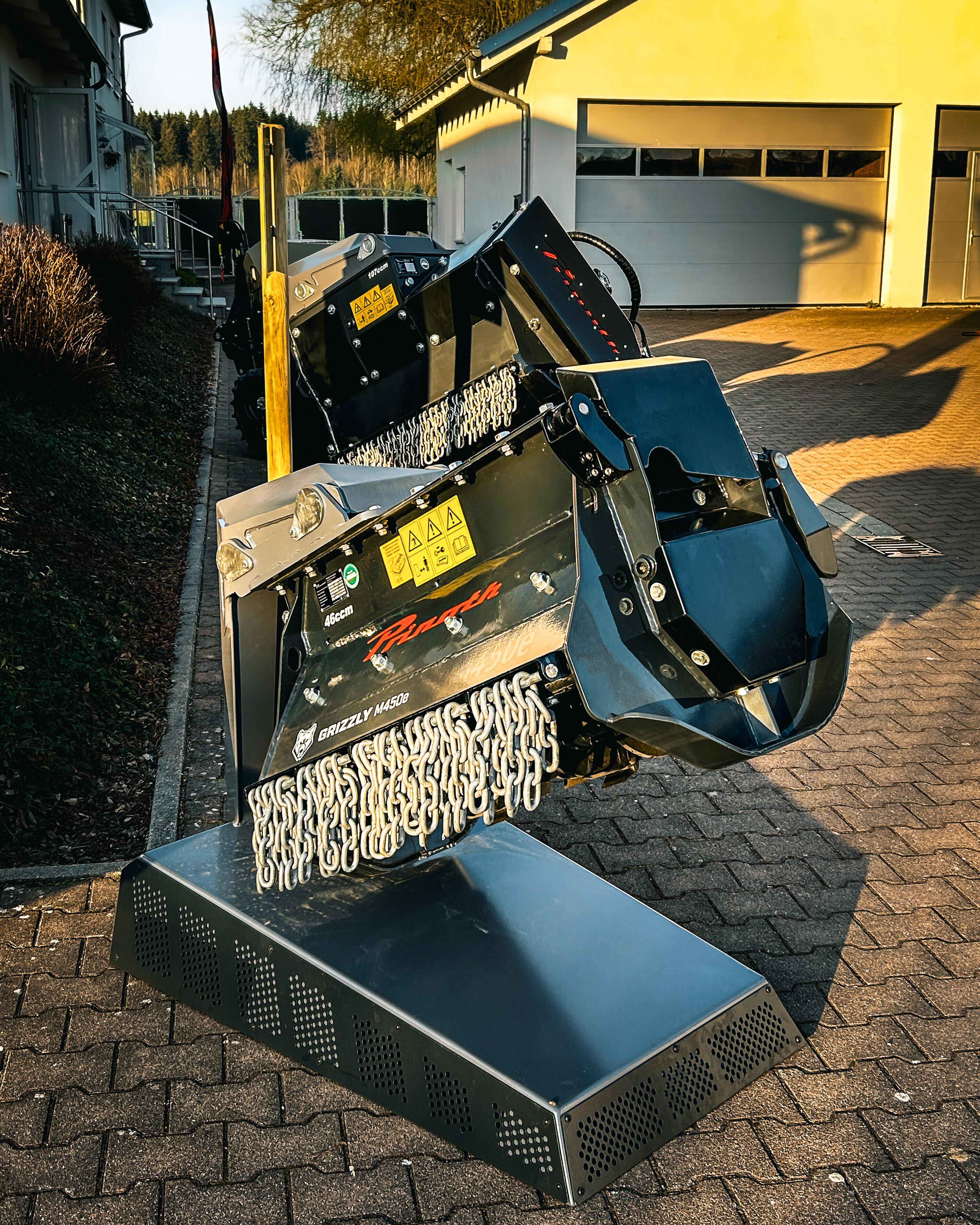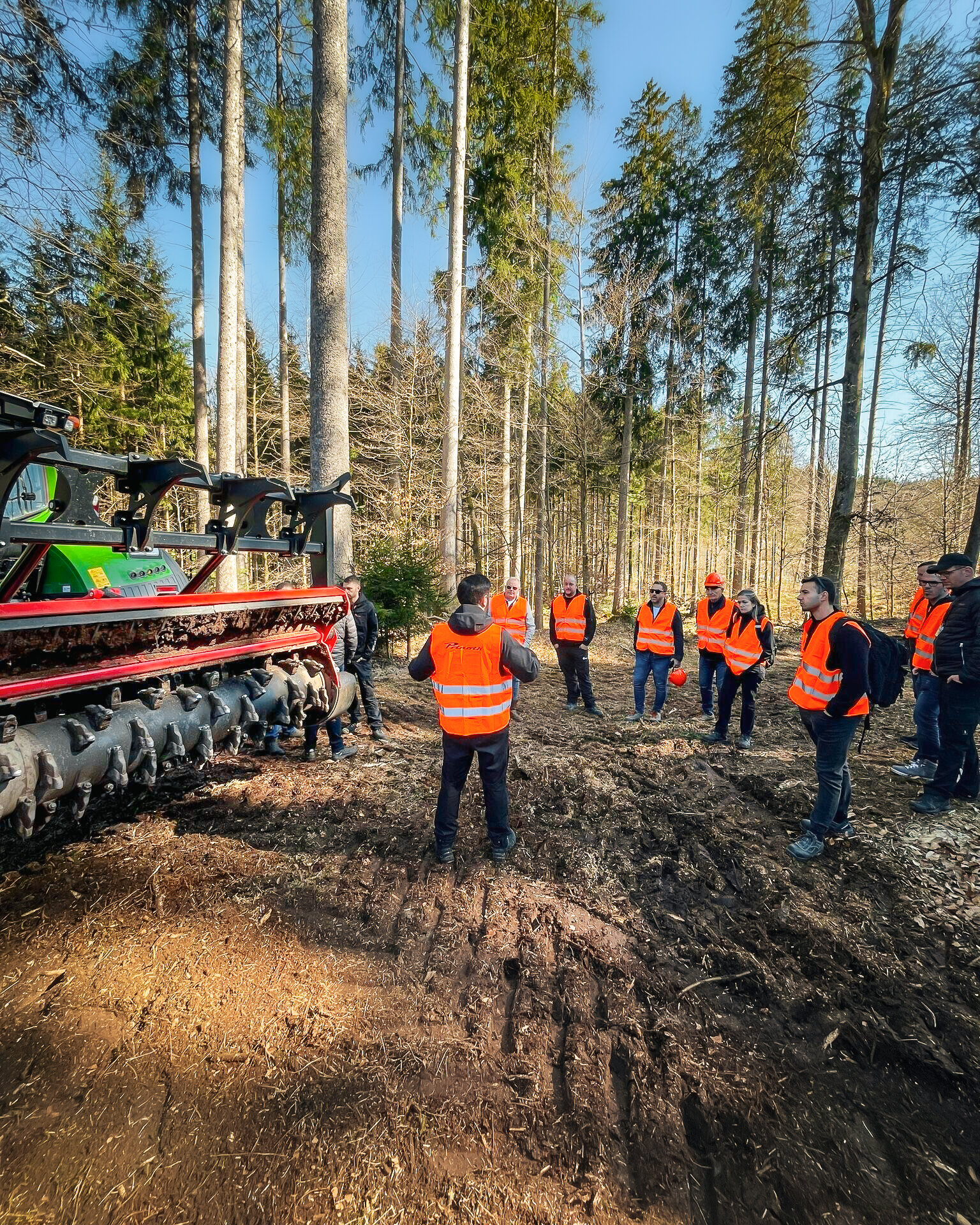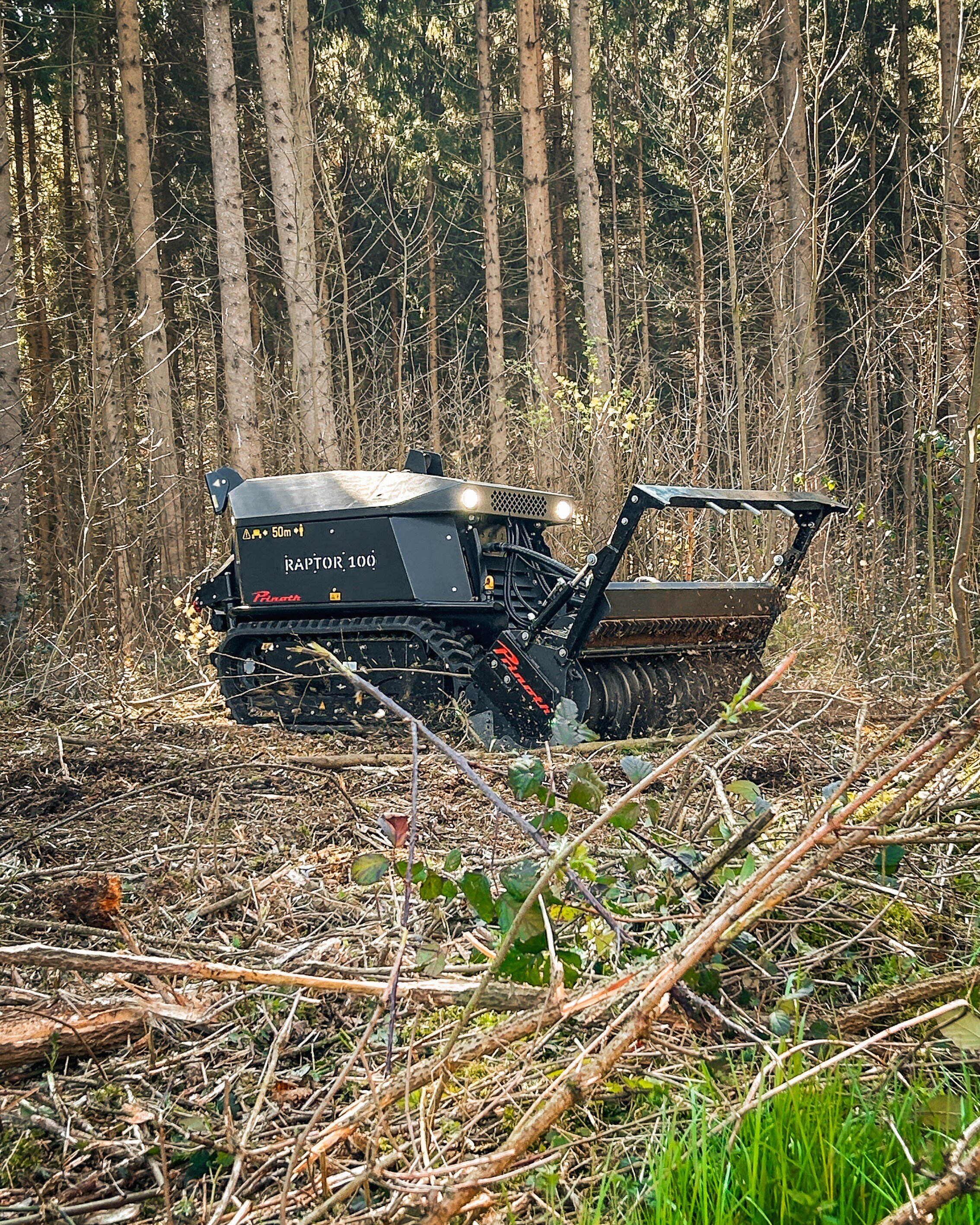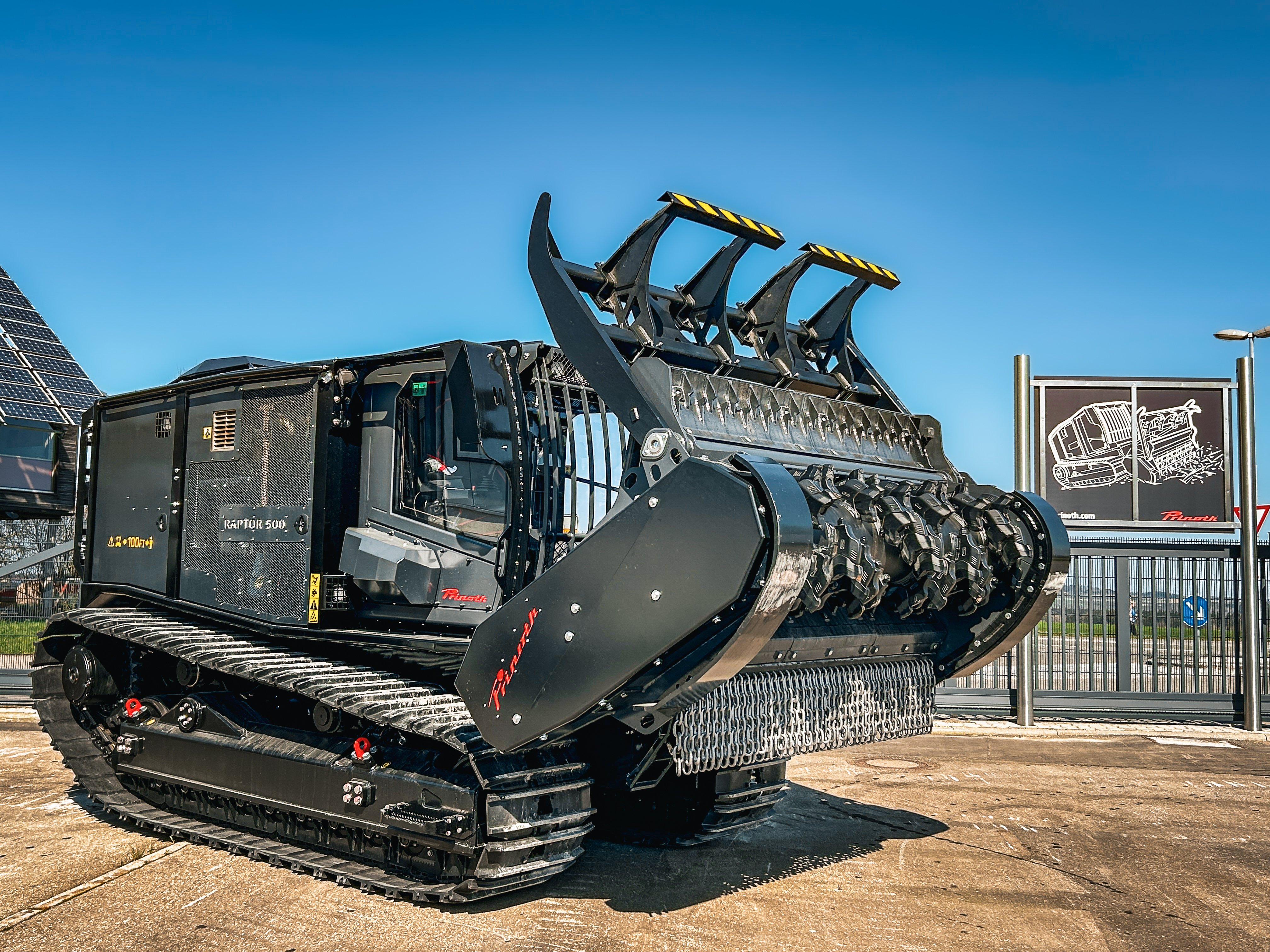 - Tag 2: Maschinen live erleben. Am zweiten Tag standen Kunden und Maschinen im Fokus. Nach einer Werksführung wurden auf der Demofläche leistungsstarke Raupenfahrzeuge, wie der Raptor 100, Raptor 200, der Baggermulcher Grizzly M350e und der Forstmulcher Grizzly M650m turbo live demonstriert. Ein Foodtruck und beeindruckende Ausstellungsmaschinen schufen Begeisterung und eine lebendige Atmosphäre, die zum entspannten Networking in lockerer Runde einlud.