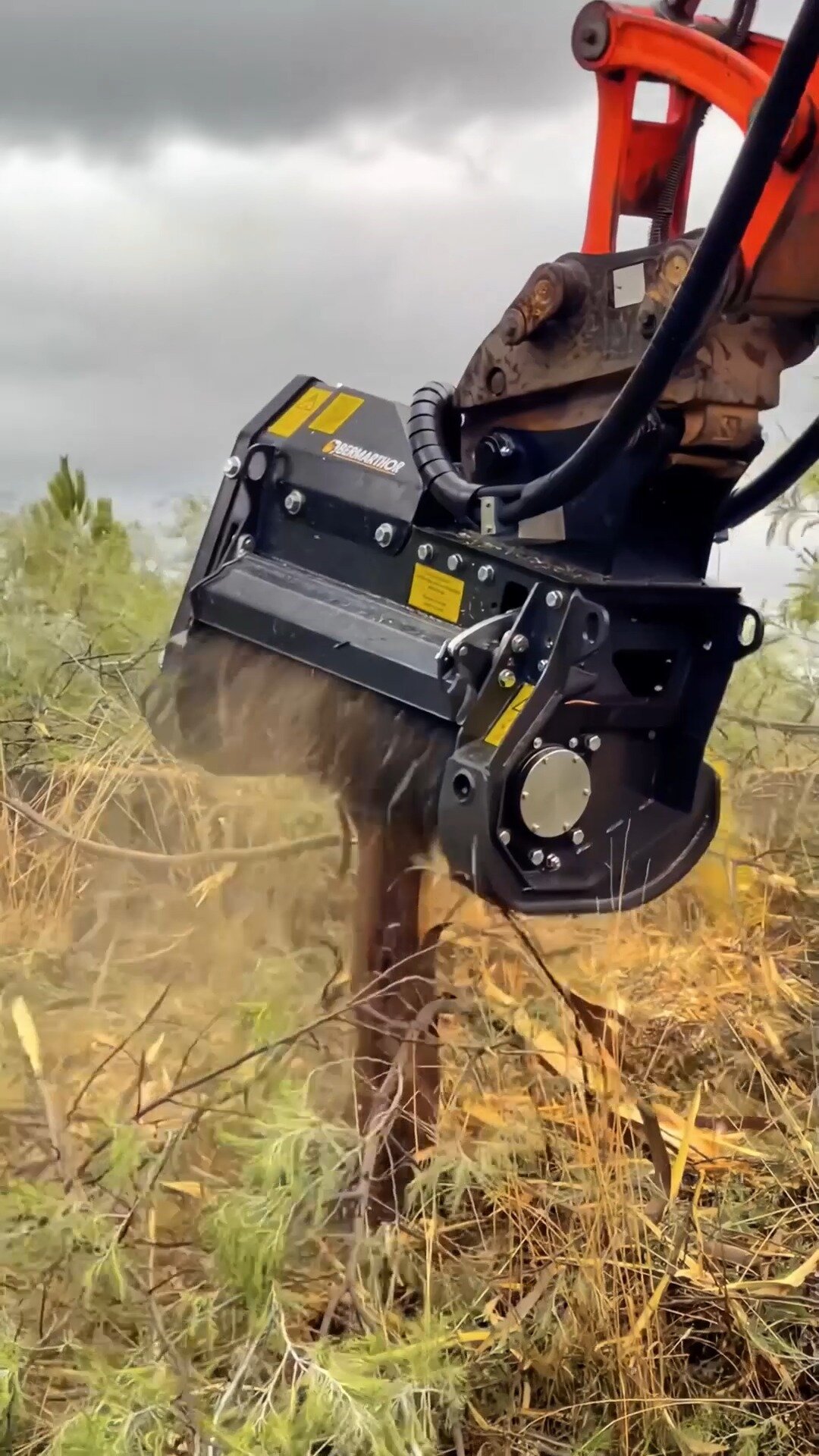 Turn 3.5–7 t excavators into forestry weapons 💥 When your machine size is limited and selective clearing is the job, the #GrizzlyM350e lets you reach in and grind standing trees down to clean mulch fast 🪵 Credits: bermarthor 🎥 #Prinoth #mulcher #prinothvegetationmanagement #excavator #excavatormulcher #excavators #excavatorattachments #mulching #vegetationmanagement