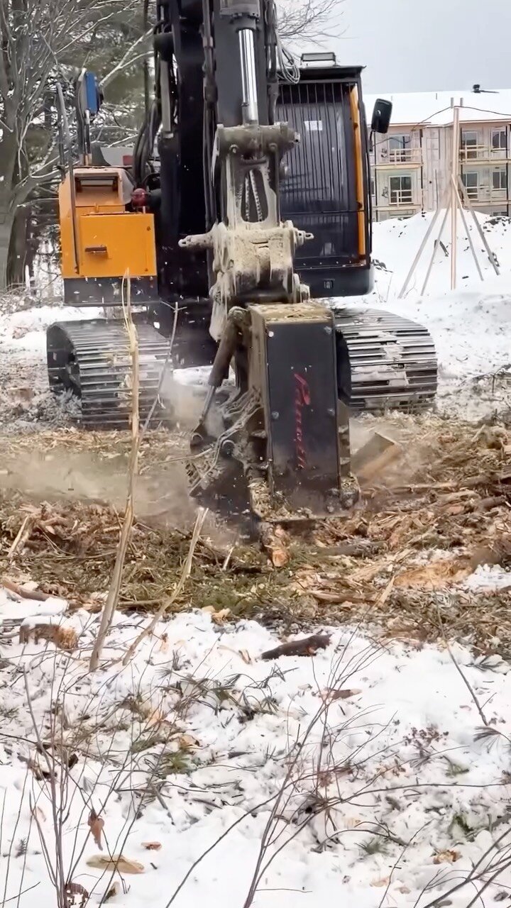 Shred stumps and bushes 💥 The #GrizzlyM500e keeps your excavator biting so you can keep shredding through tough cleanup work, backed by a robust housing and bolted, wear-resistant skids and liners built for the rough stuff 💪 Credits: duratekequipements 🎥 #Prinoth #prinothvegetationmanagement #excavator #excavatormulcher