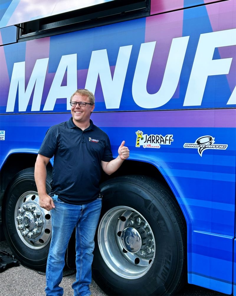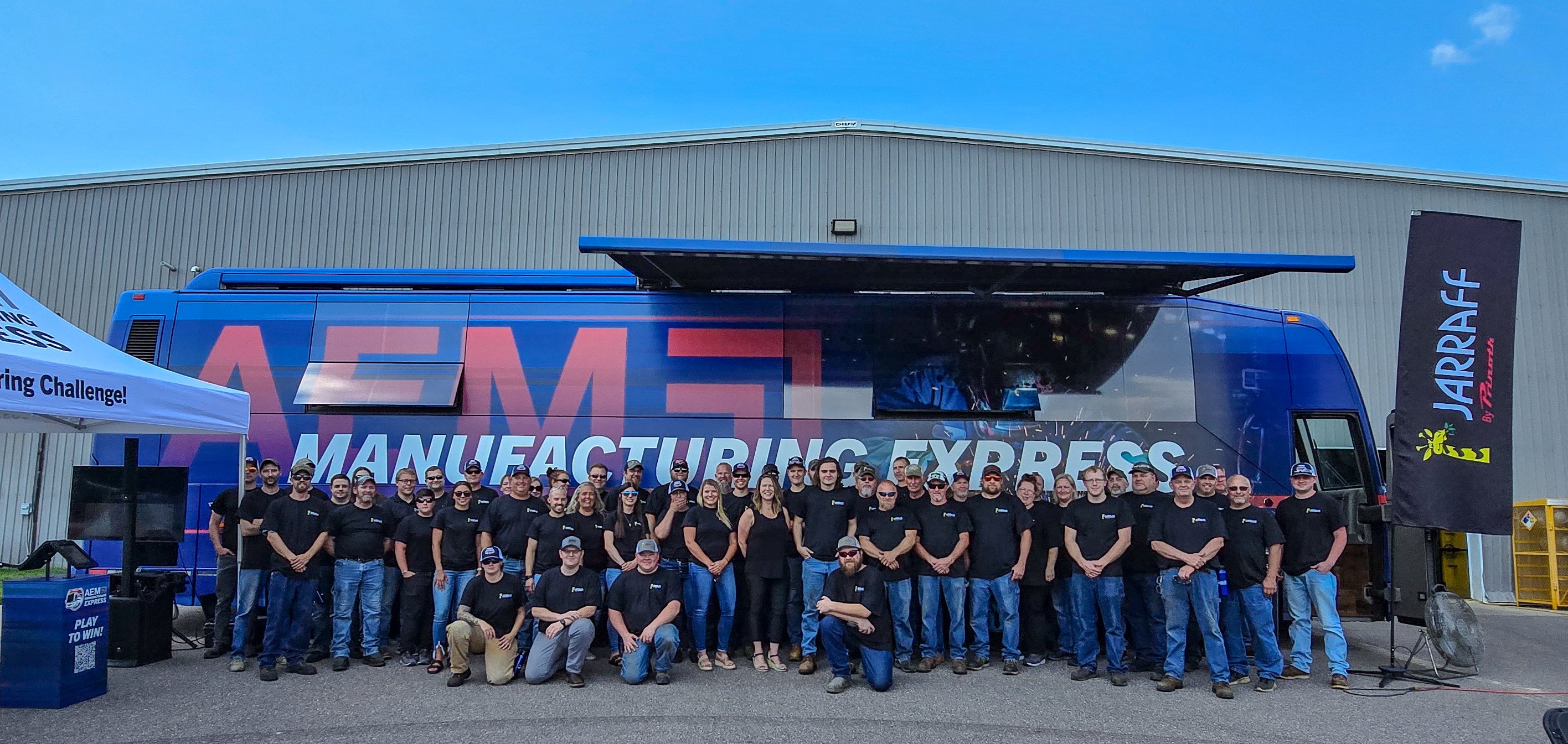 The AEM Manufacturing Express, a nationwide tour highlighting the equipment manufacturing industry, made a special stop at Jarraff to recognize the company’s role in powering progress. The event featured brief presentation with speakers from the City of St. Peter, AEM, and Jarraff, lunch, games, giveaways, and a production tour for guests.