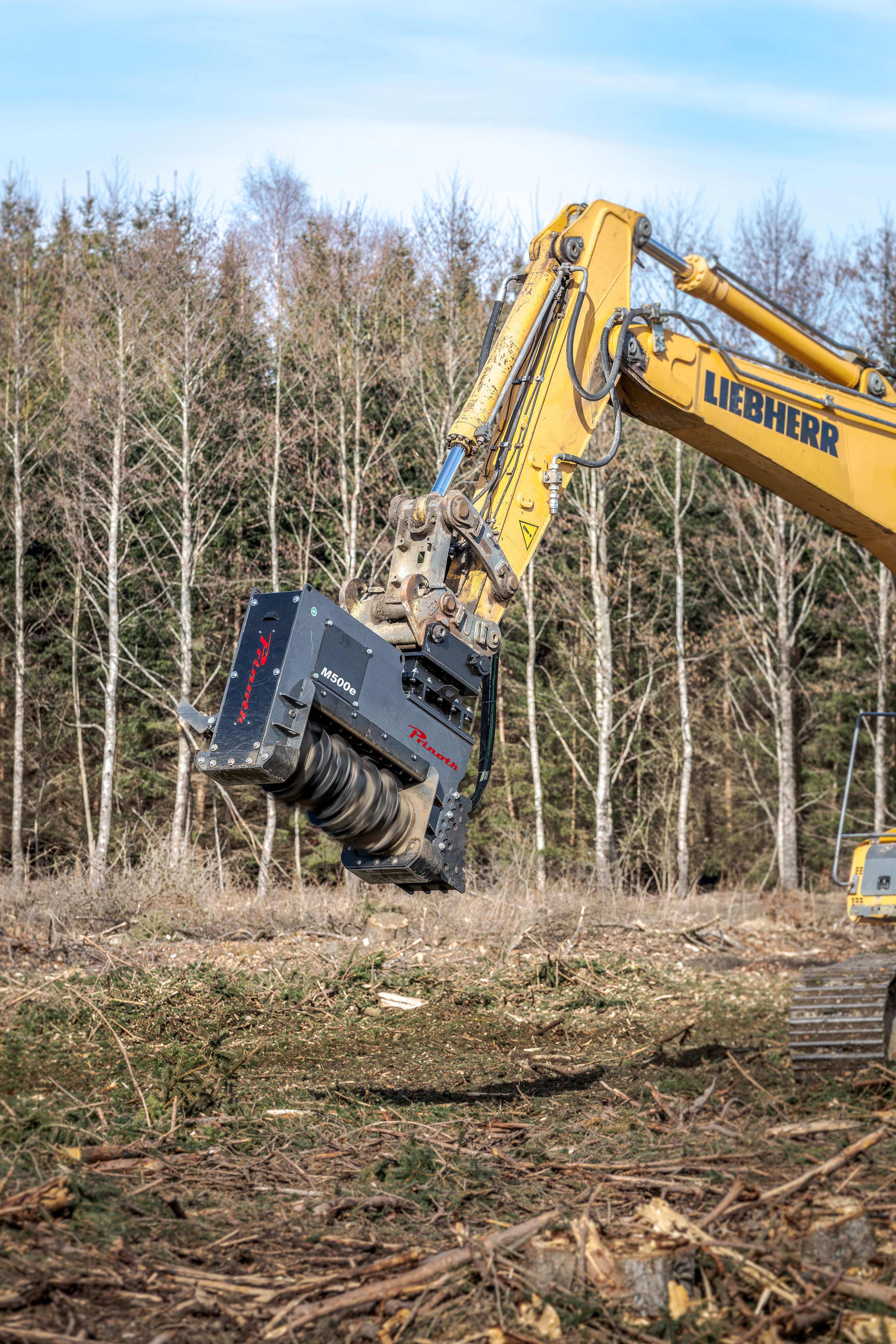 With the new tilt function, the mulching head can be moved 10° in forward and 90° in backward position. This is ideal when working on standing trees.