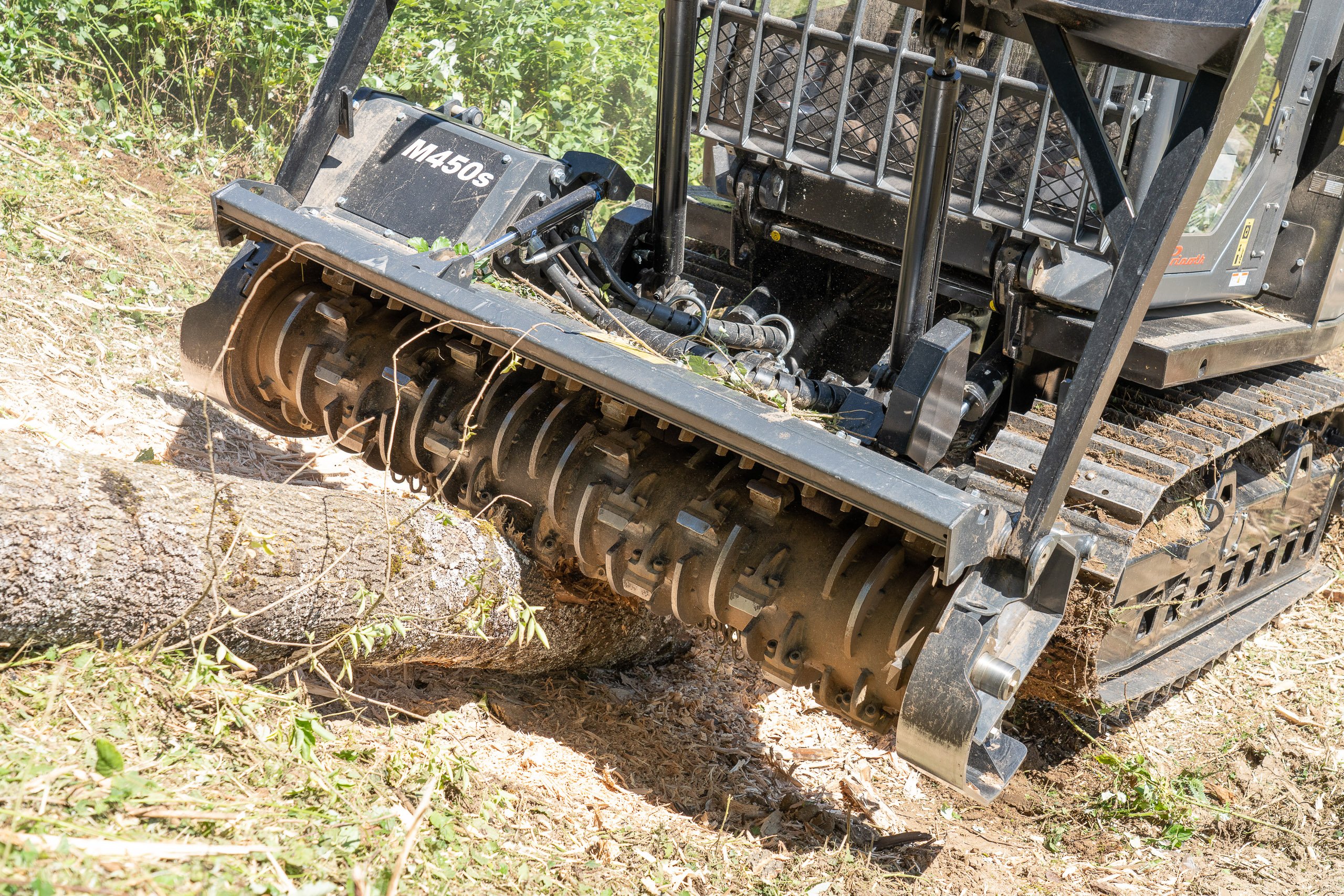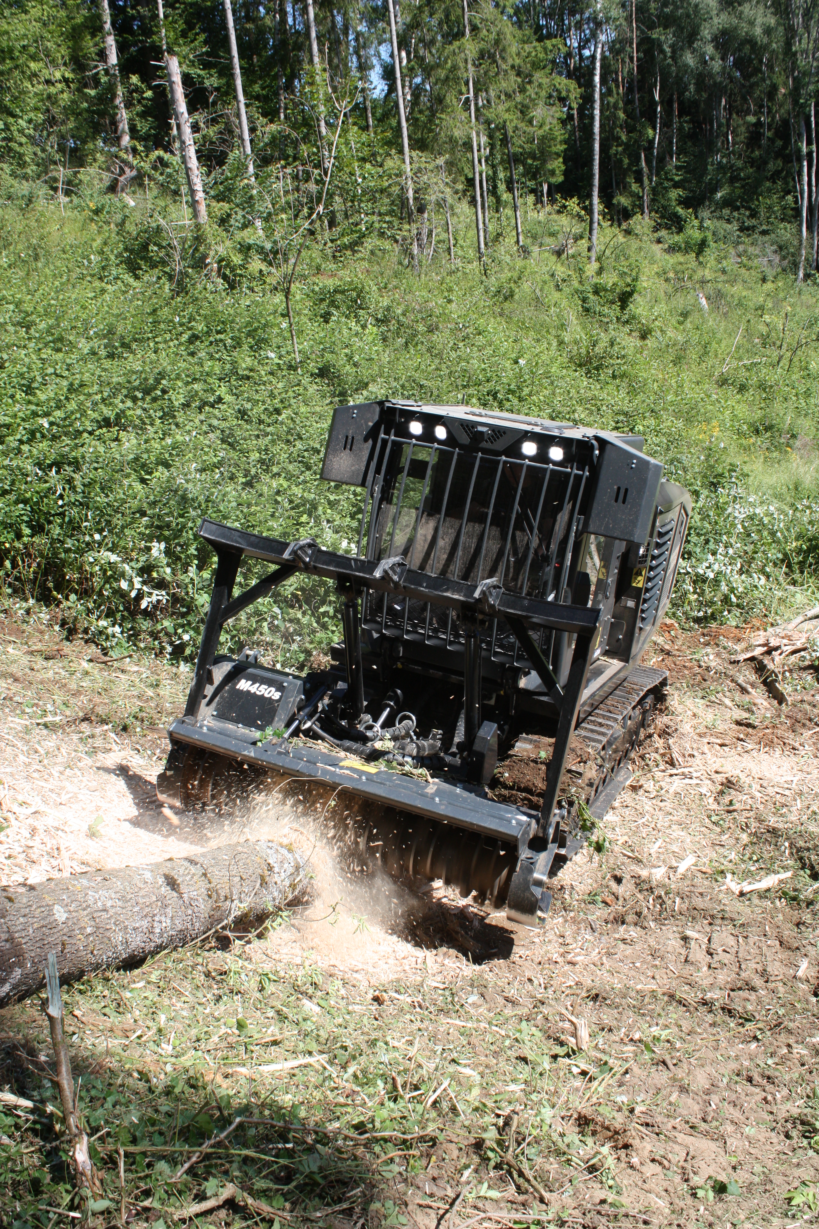 The powerful M450s mulching attach¬ment with hydraulic push bar and flap, efficient counter blades and the patented BCS or UPTs rotor system ensure perfect mulching results.