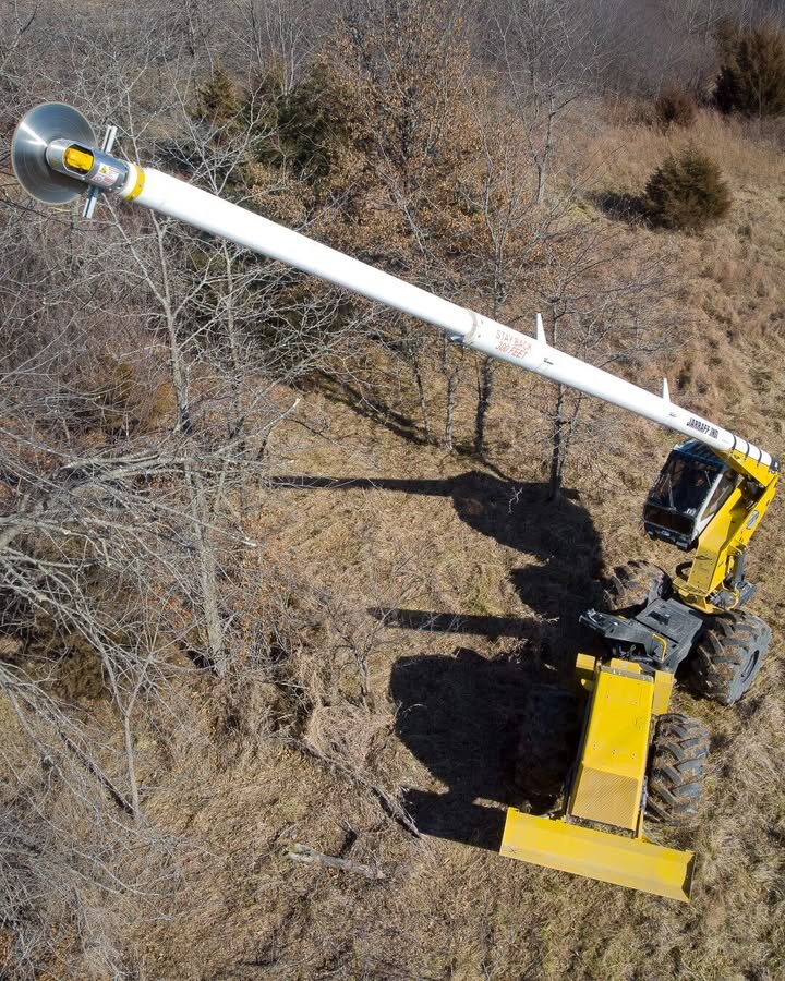 Attack every angle‼️ The #Jarraff delivers clean, precise cuts all around, thanks to its 180° rotating saw head, tilting cab, and 360° rotating boom that lets you handle uneven terrain from any position 🌳 Credits: lanracorp 📸 #Prinoth #prinothvegetationmanagement #treetrimming #linemaintenance