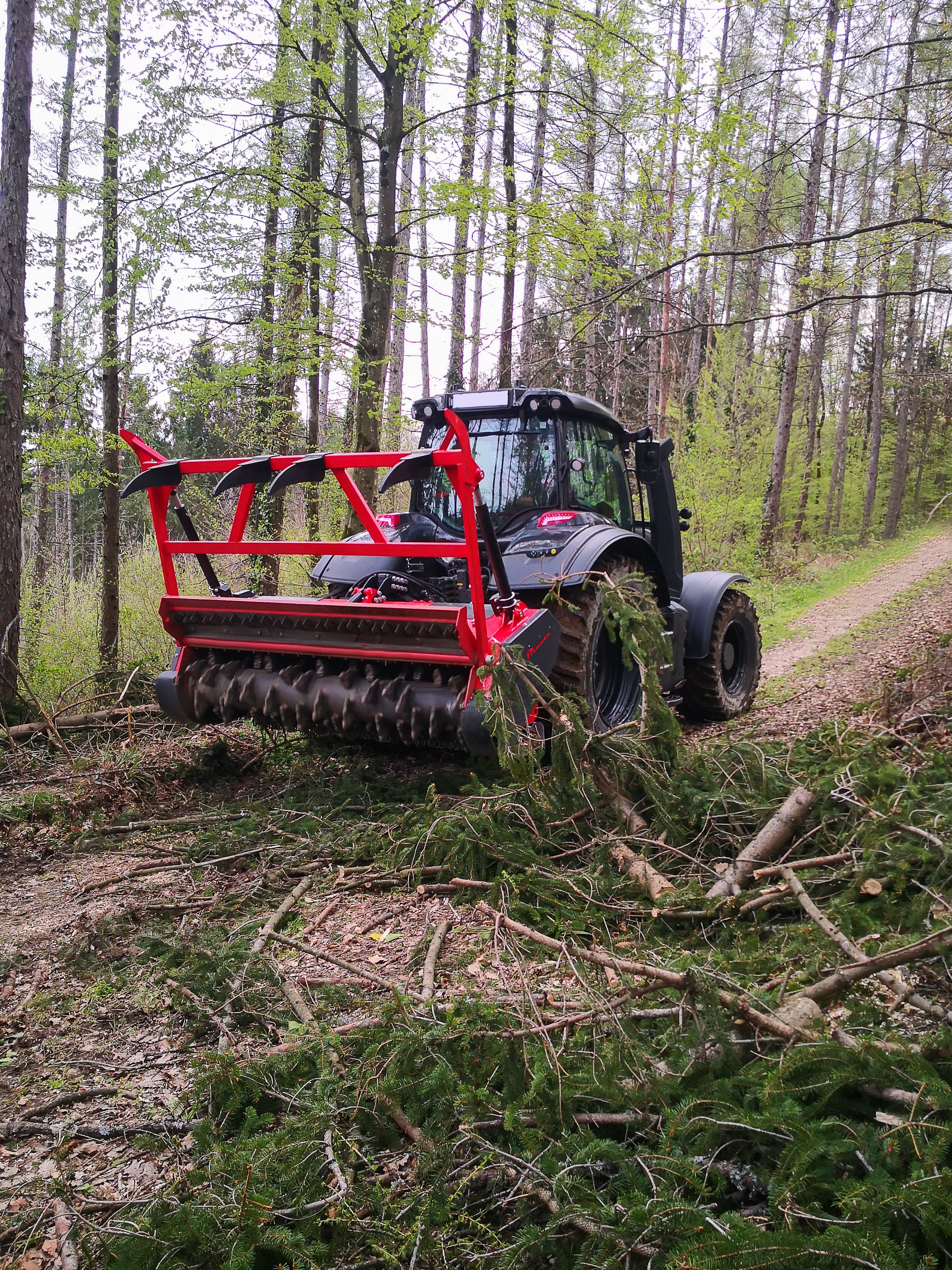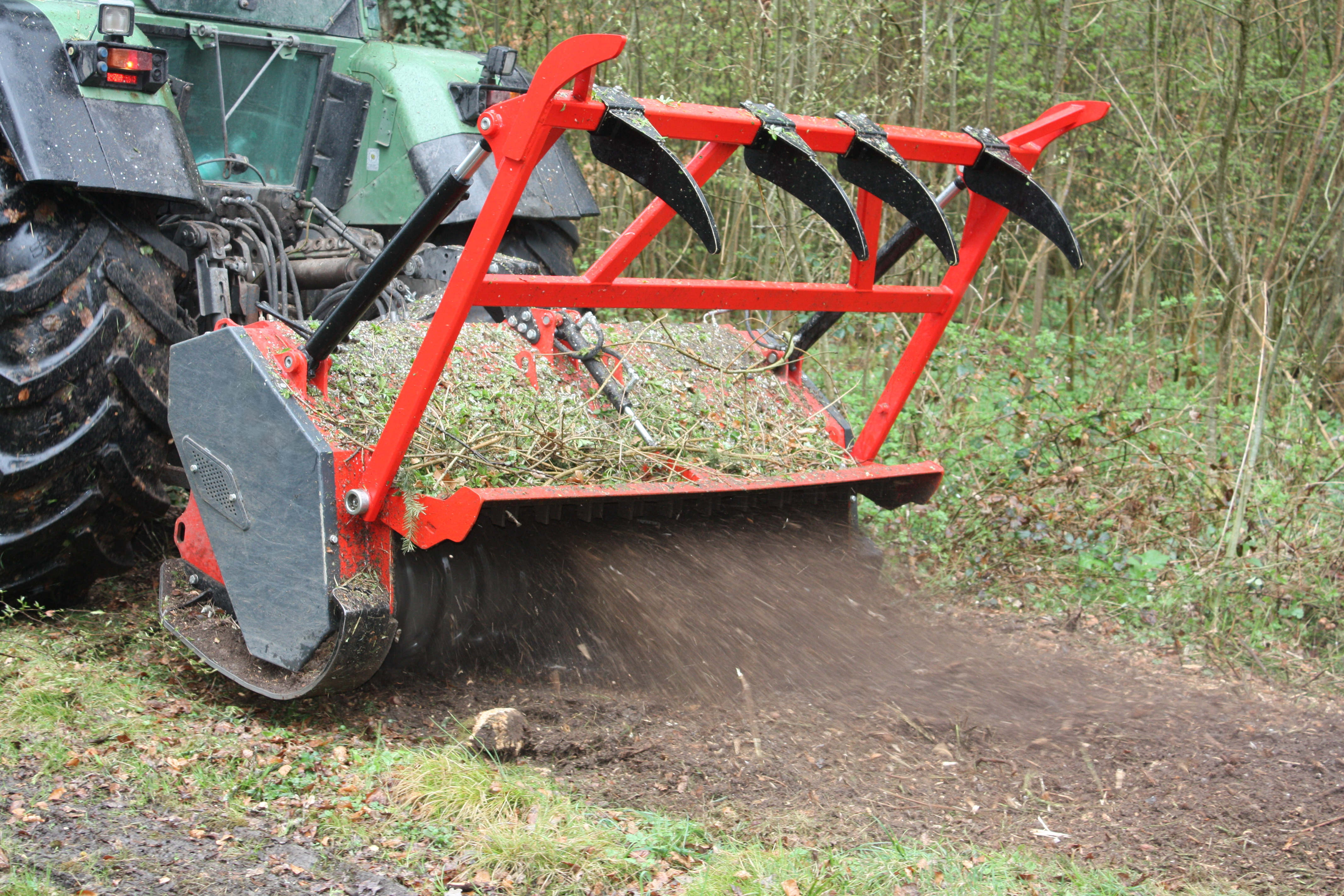 Due to the relatively vertical position, the center of gravity of the mulcher is very close to the tractor.