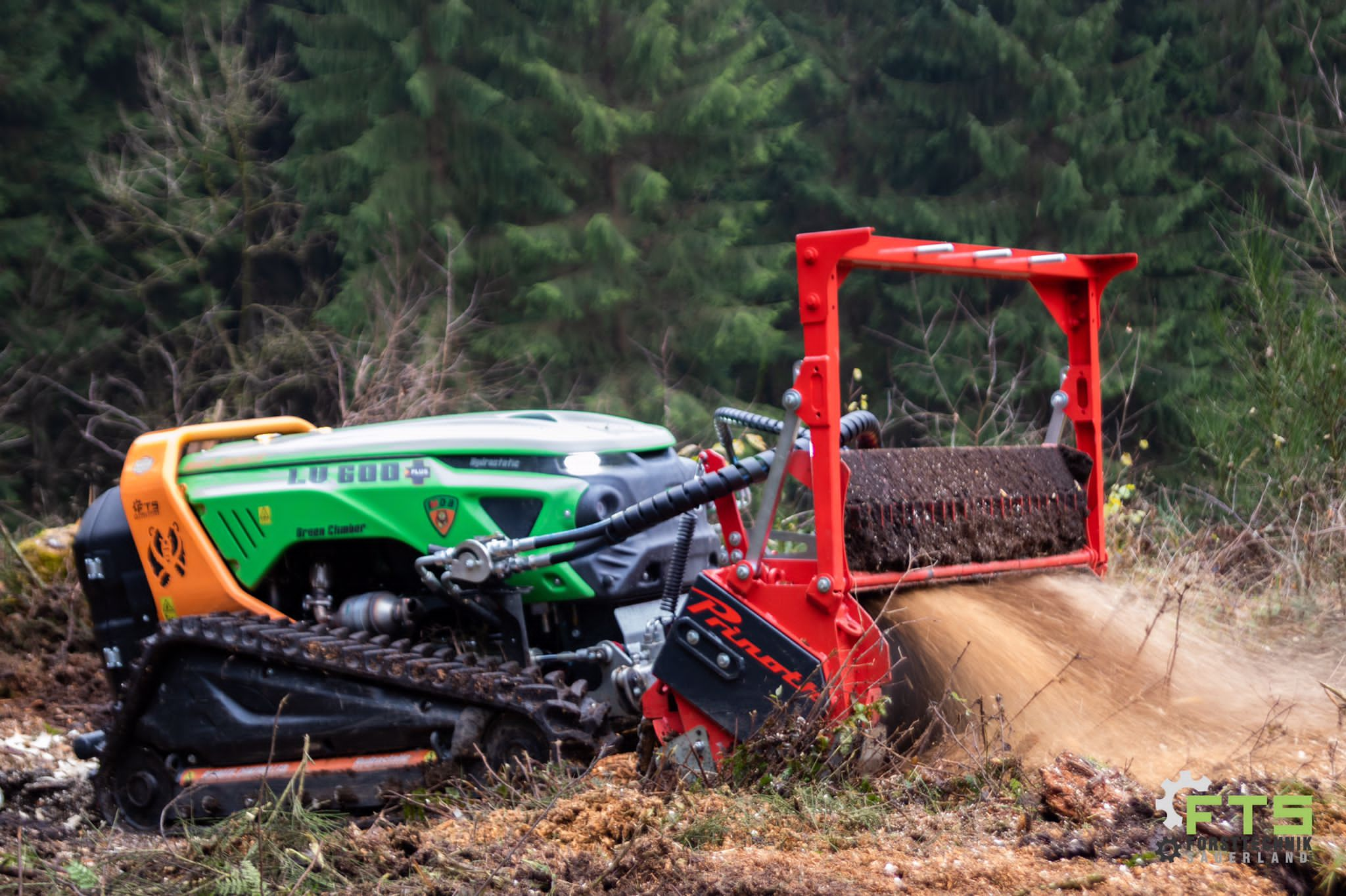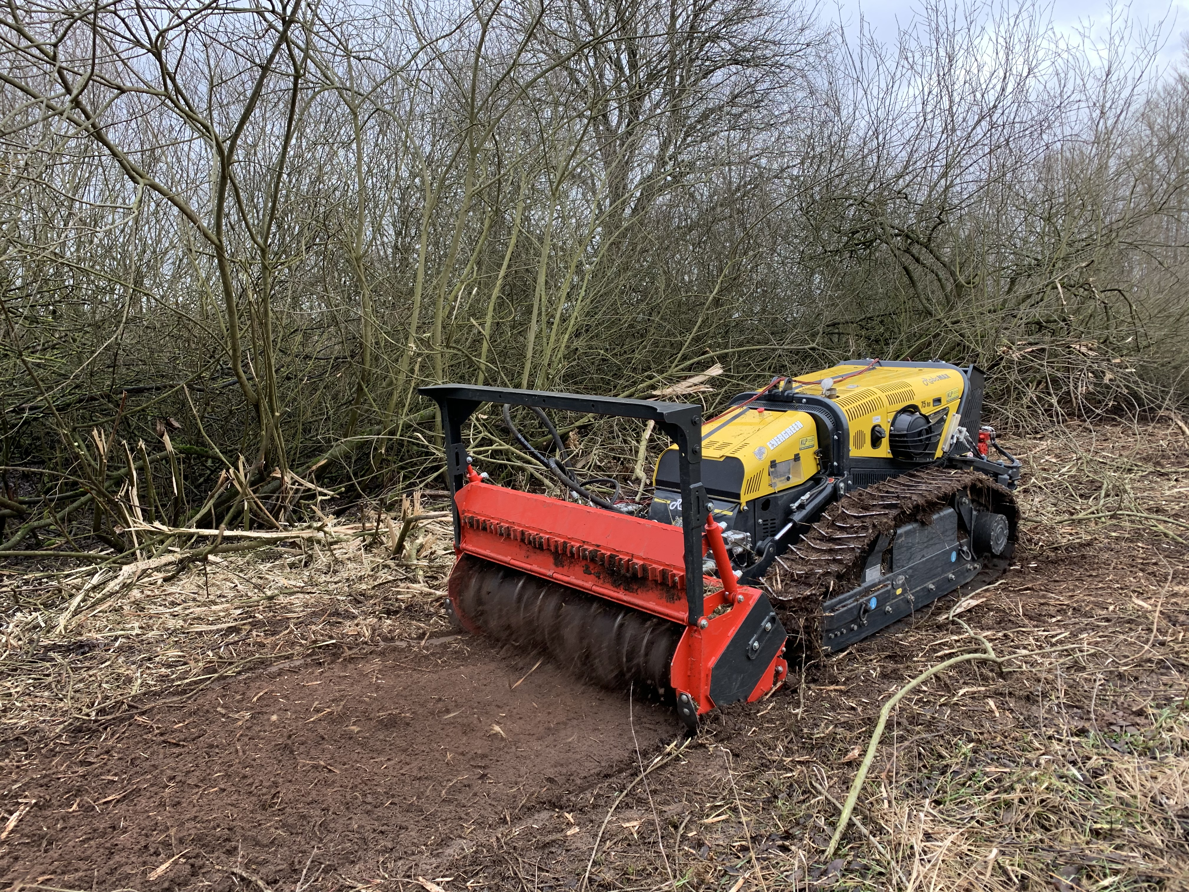 Hydraulic driven brush mulcher for remote controlled and hydraulic carriers.