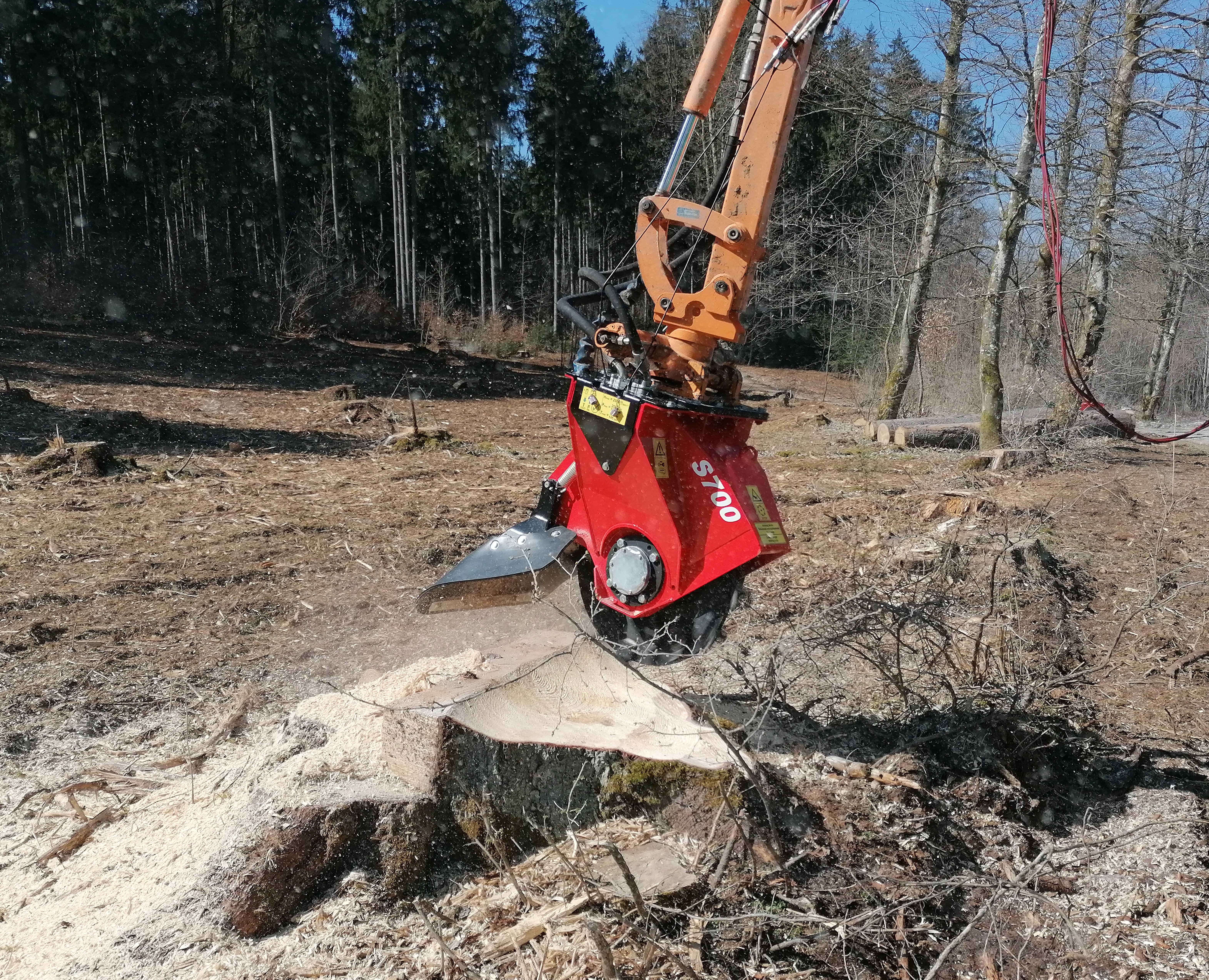 Parfaite pour défricher les sols avec de grosses souches ou racines, quelle que soit leur taille. Une roue de broyage puissante équipée d’outils agressifs oscille sur le bras de la pelle au-dessus de la souche et la fraise en profondeur. La Beaver S700e est conçue pour les pelles de 6 à 12 tonnes avec bras d’extension équivalent.