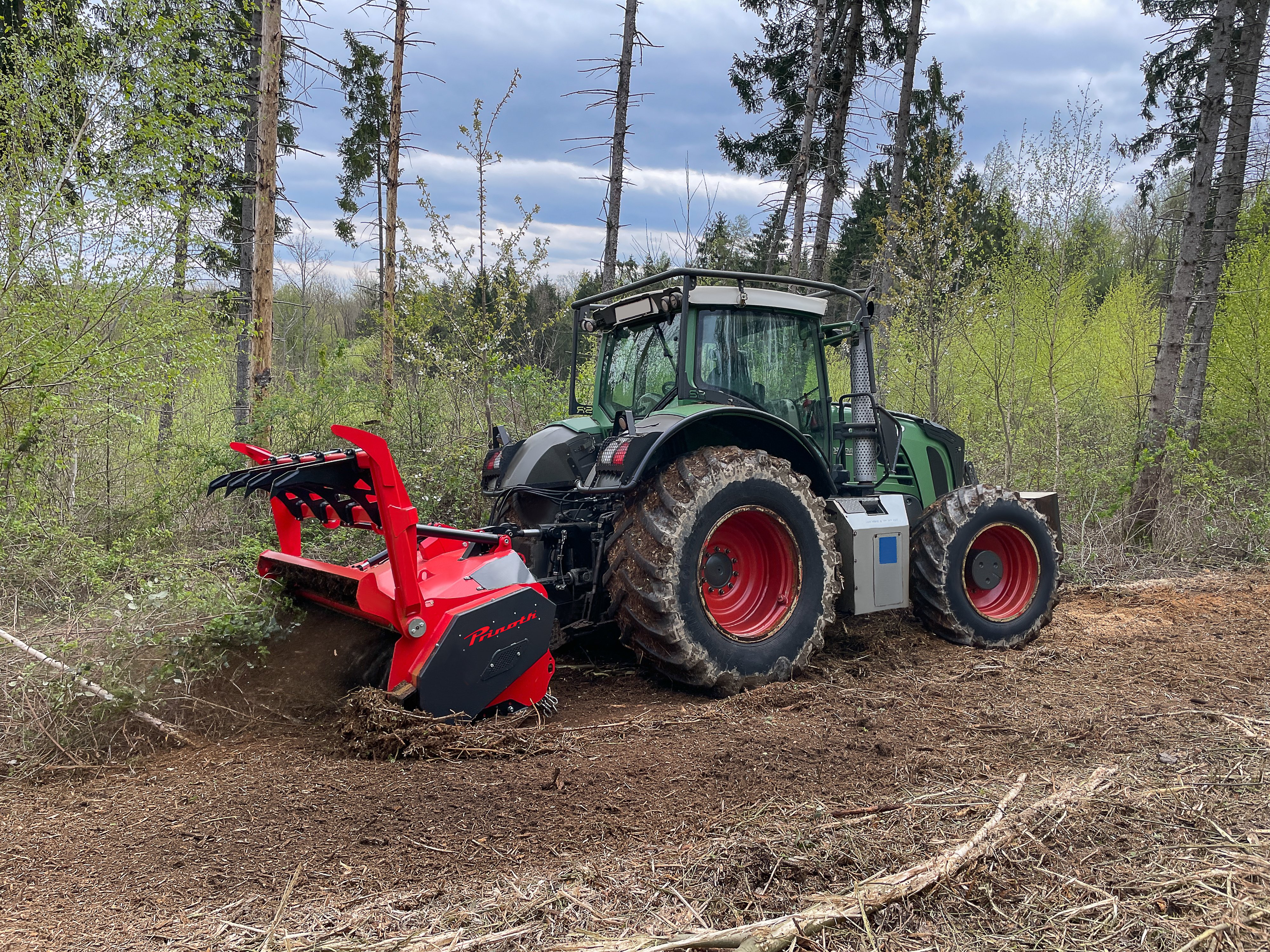 グリズリーM650mはPTO駆動のマルチャーで、最大35cmまでの幹や樹木のマルチングに適しています。