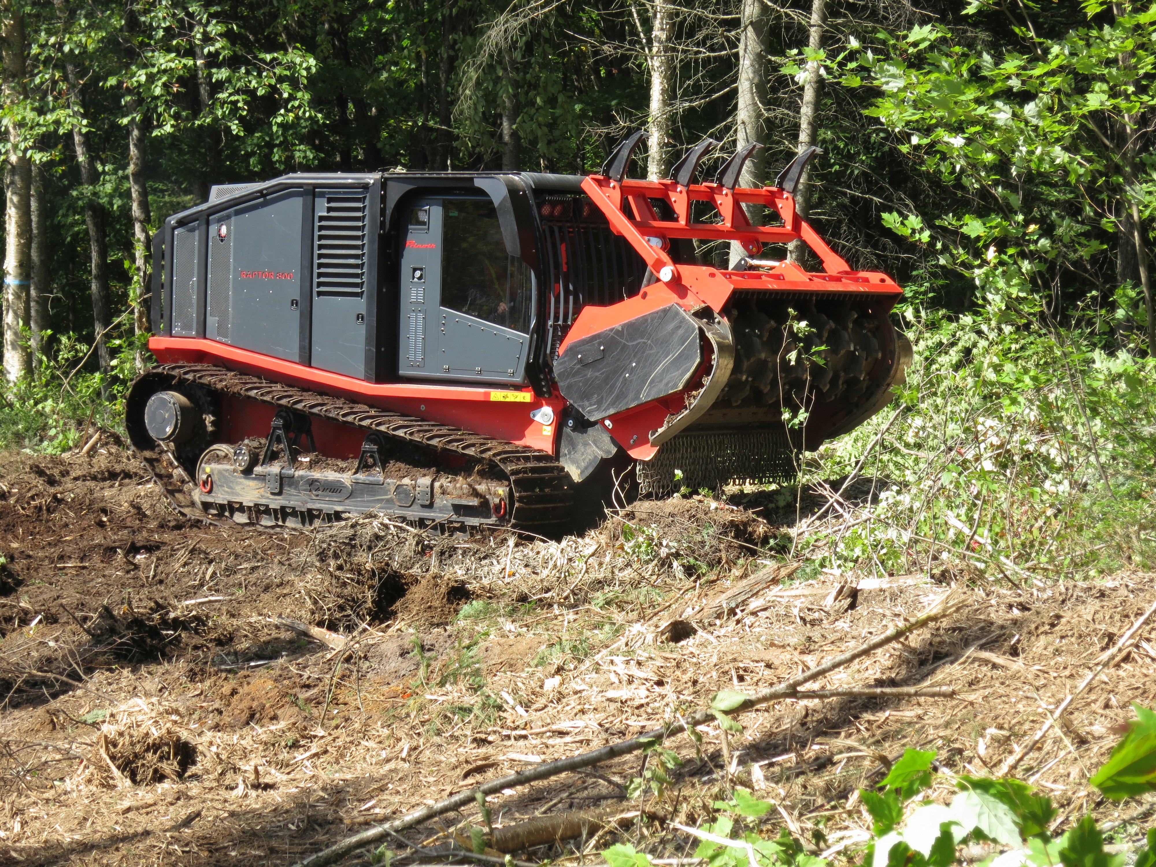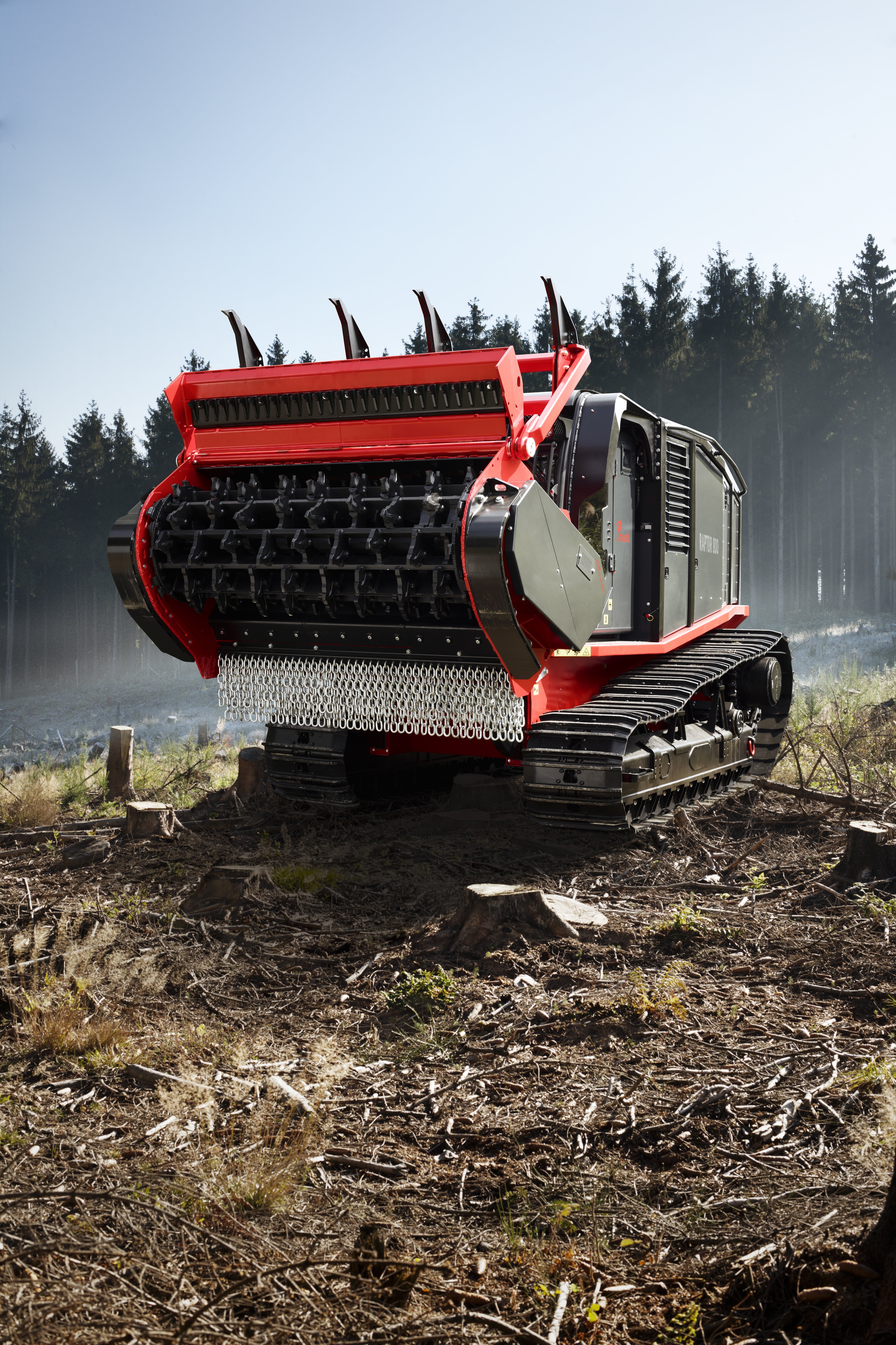 油圧プッシュバーとフラップ、効率的なカウンターブレード、特許取得のUPTローターシステムを備えたパワフルなアタッチメントM900mを装備したラプター800は、非常に困難な場所でも完璧なマルチング結果を実現します。