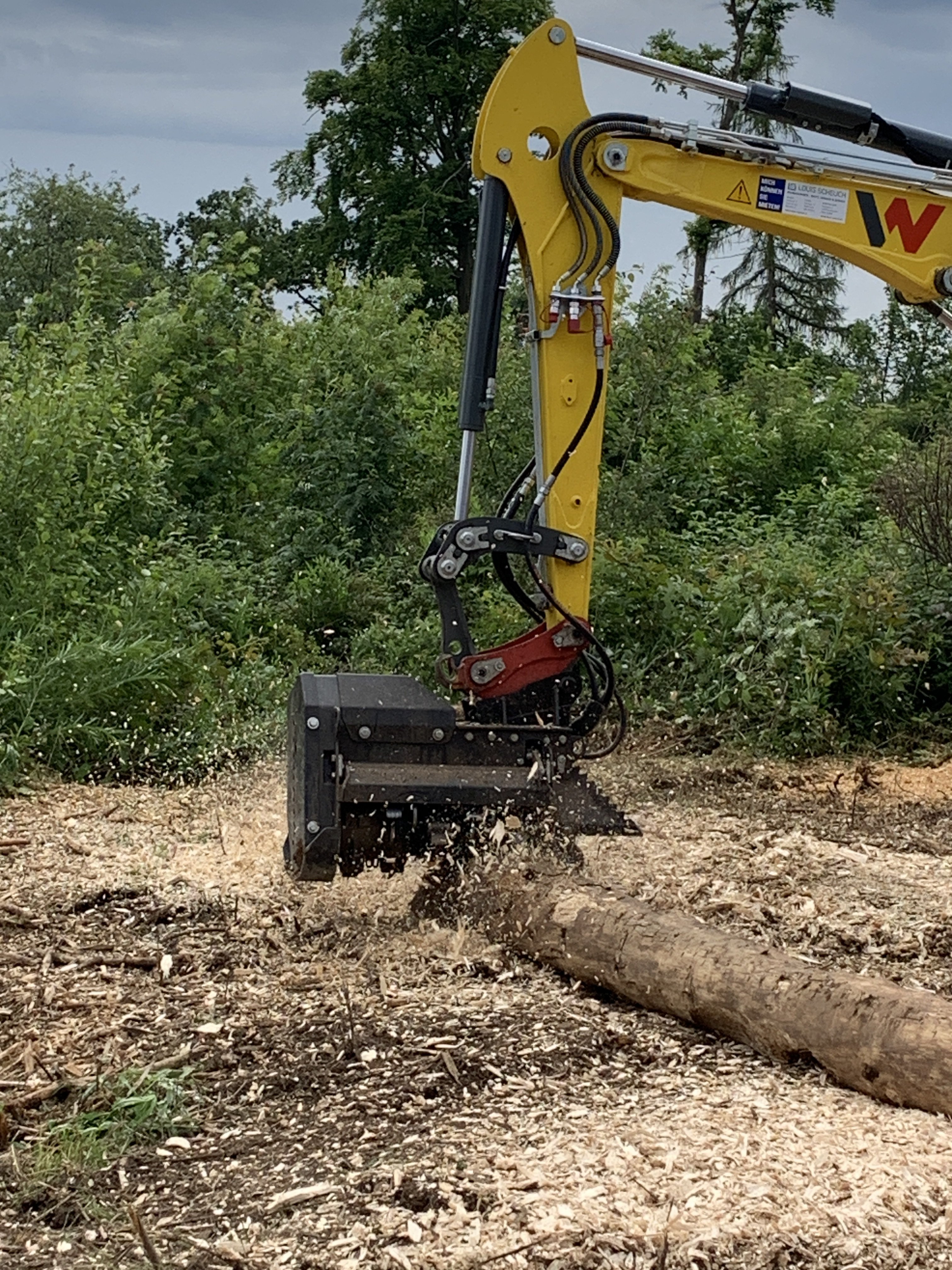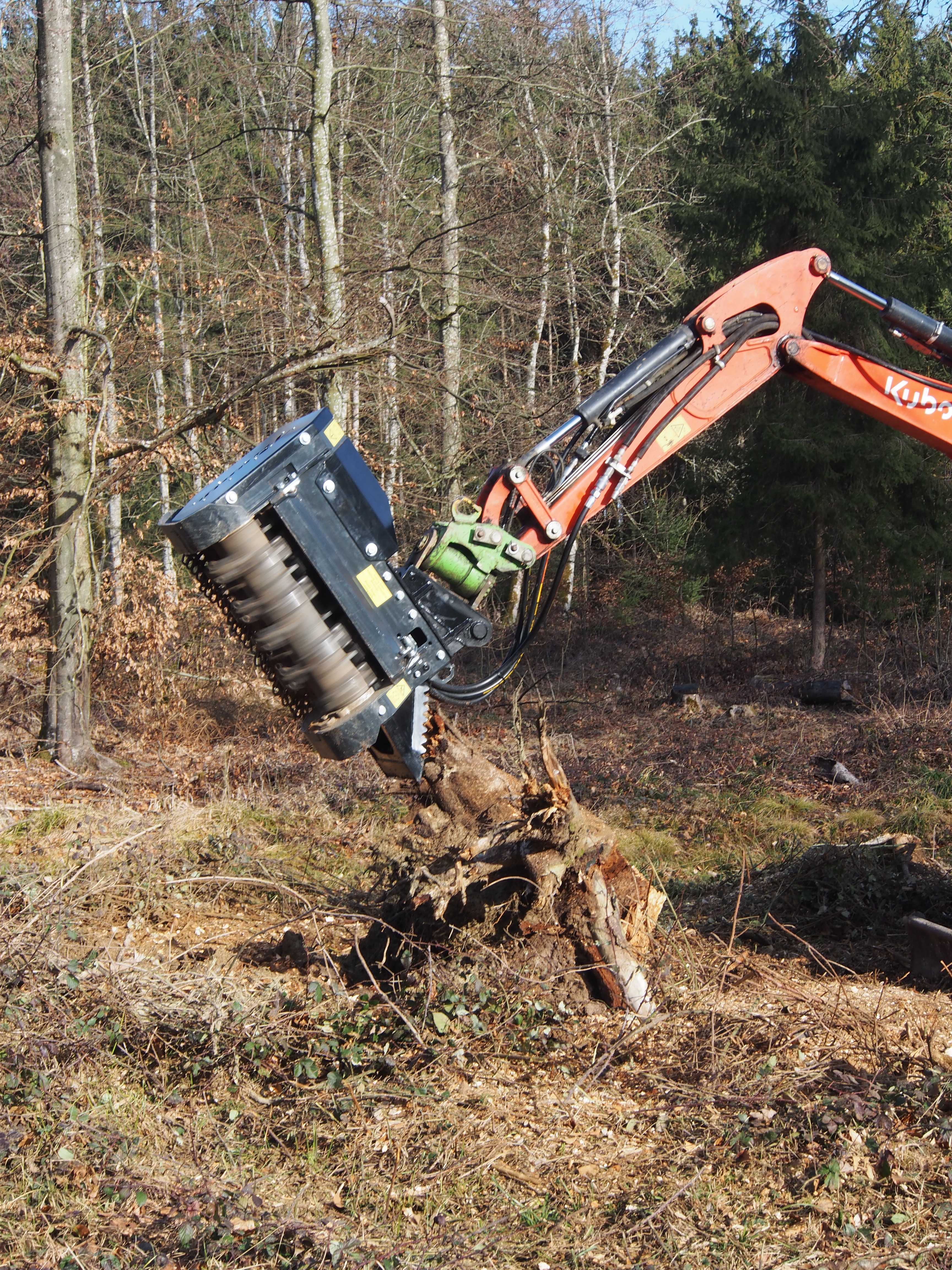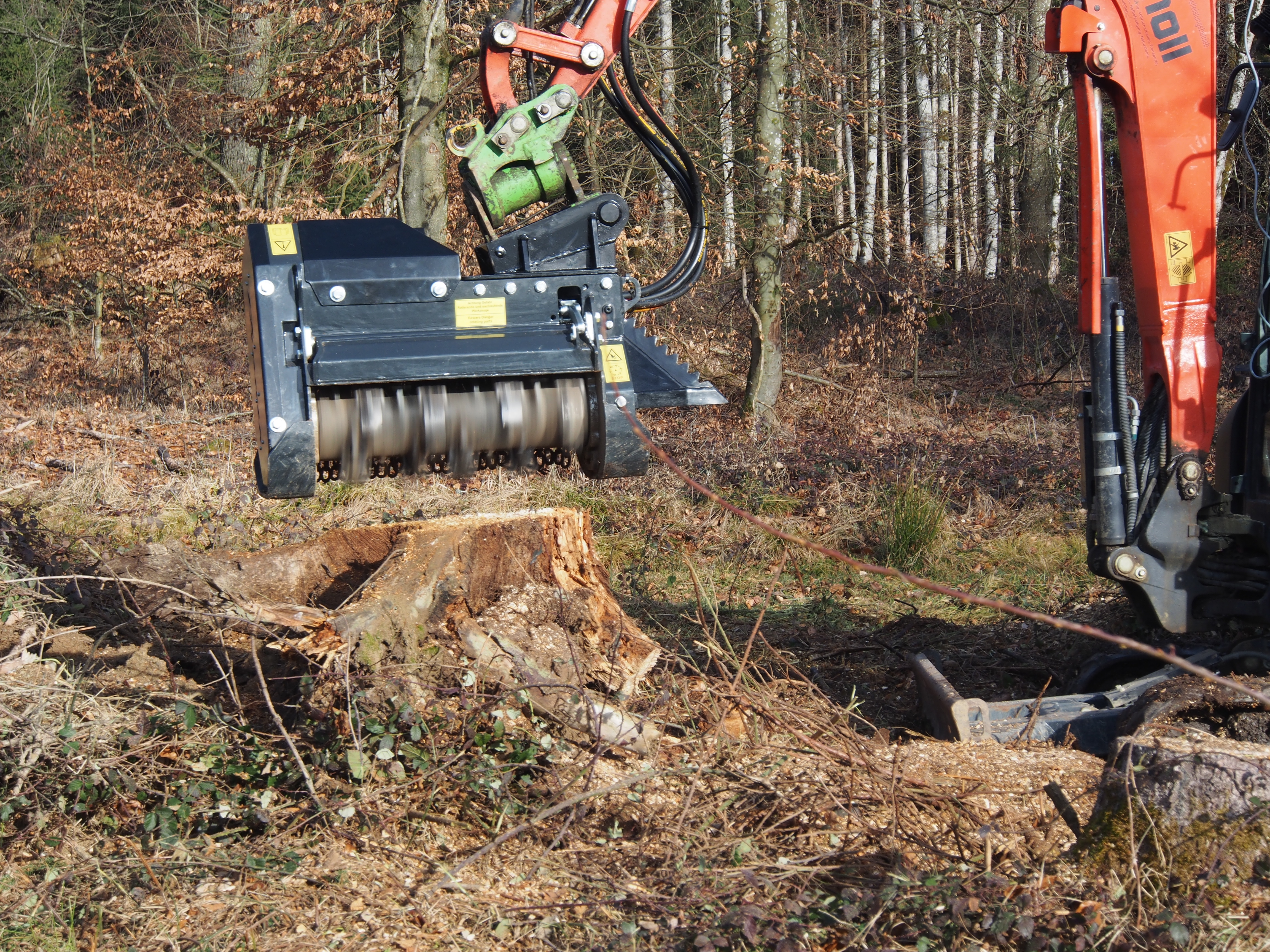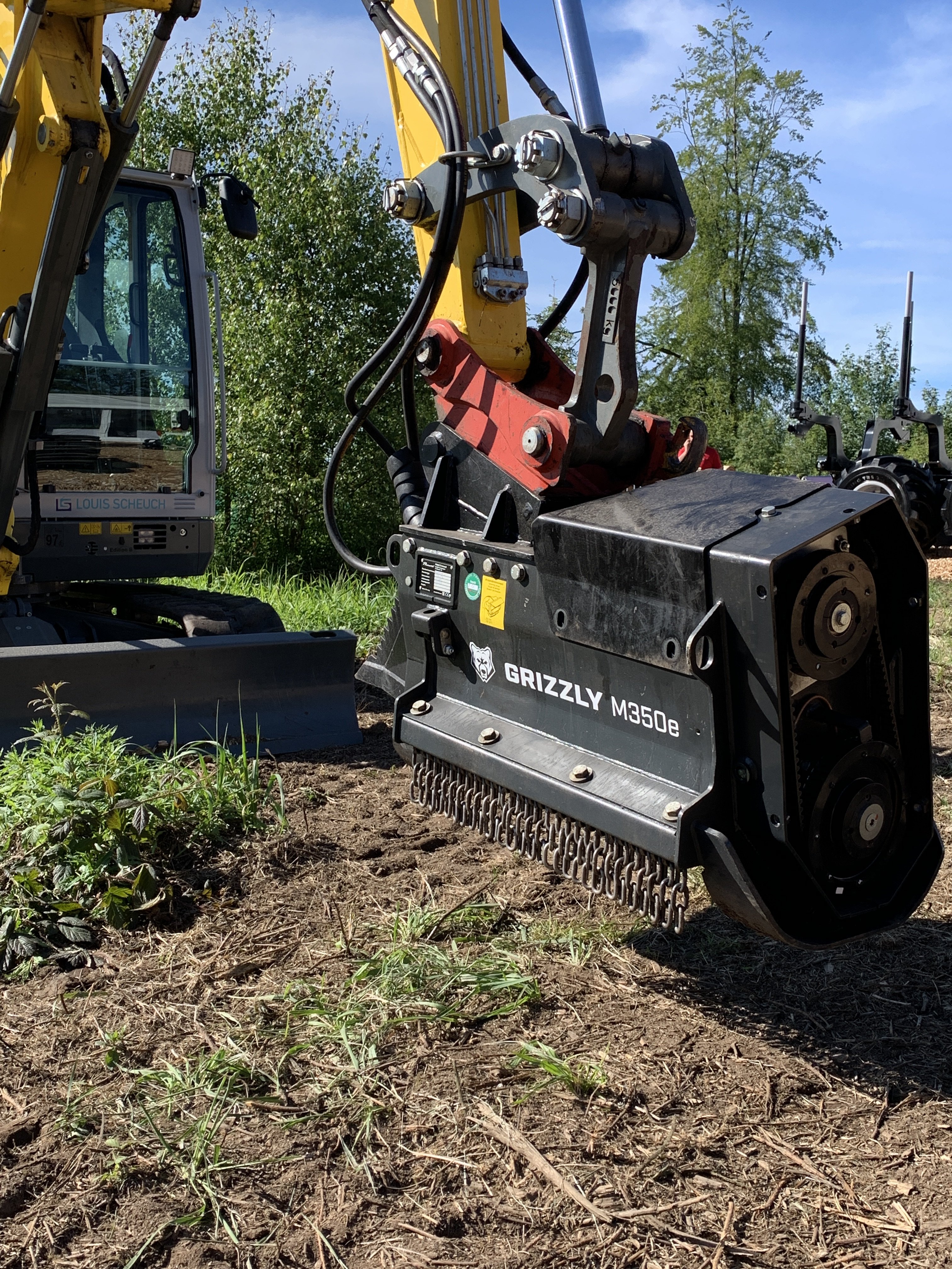 The Grizzly M350e is a completely new designed forestry mulcher for 3.5 – 7 t excavators. It is equipped with a powerful 60 cc hydraulic motor to cover the flow range of small excavators and to achieve the best performance for perfect mulching results.